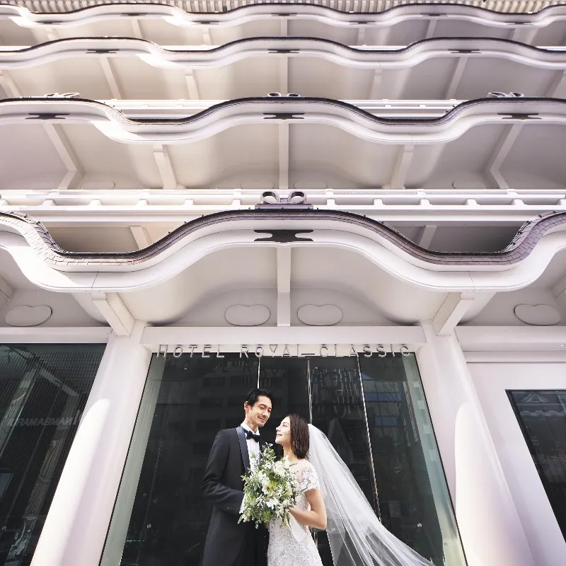 元歌舞伎座の立地に佇むデザイナーズホテルは両親や年配ゲストからの評判も上々。全天候型のチャペルではアフターセレモニーも楽しめる贅沢な空間やゲストハウスのような演出×上質なホスピタリティが人気